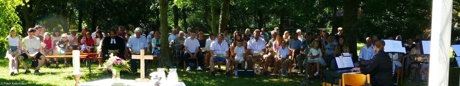 Beim Gottesdienst taufte Pfarrer Schrimpf vier Kinder im nahe gelegenen Pulverbach. Er selbst stieg in den Bach und schöpfte das Wasser daraus. Die Familien konnten aus nächster Nähe vom Ufer aus zusehen, oder selbst mit in den Bach steigen. Die Gemeinde konnte von der Fußgängerbrücke im Park aus das Geschehen beobachten. Obwohl sich die Taufsprüche der Täuflinge unterschieden, handeln sie alle davon, dass Jesus unser aller Rettung ist.